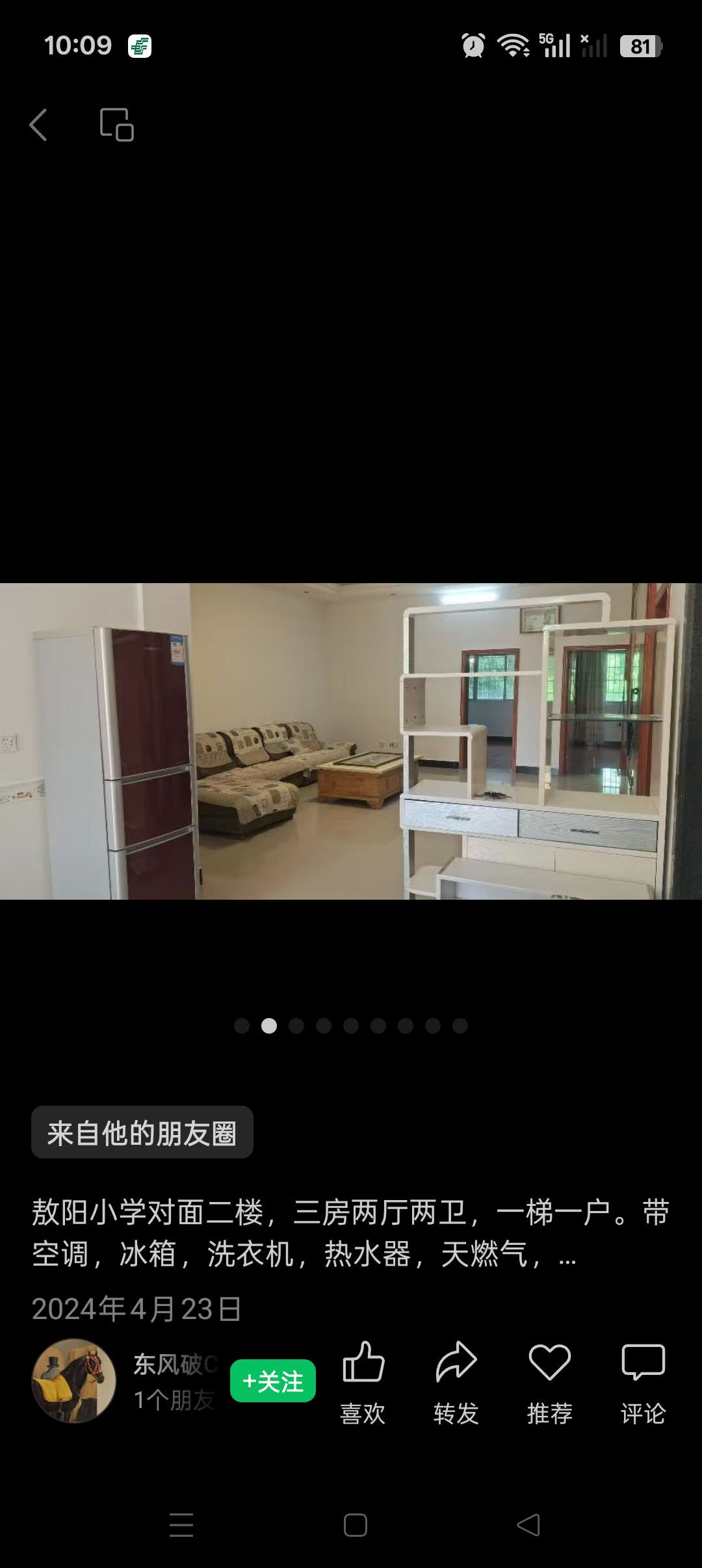 敖阳小学对面二楼,三房两厅两卫,一梯一户。带空调,冰箱,洗衣机,热水器,天燃气,设备齐全,拎包入住,交通便利,环境好,停车方便15879583166
