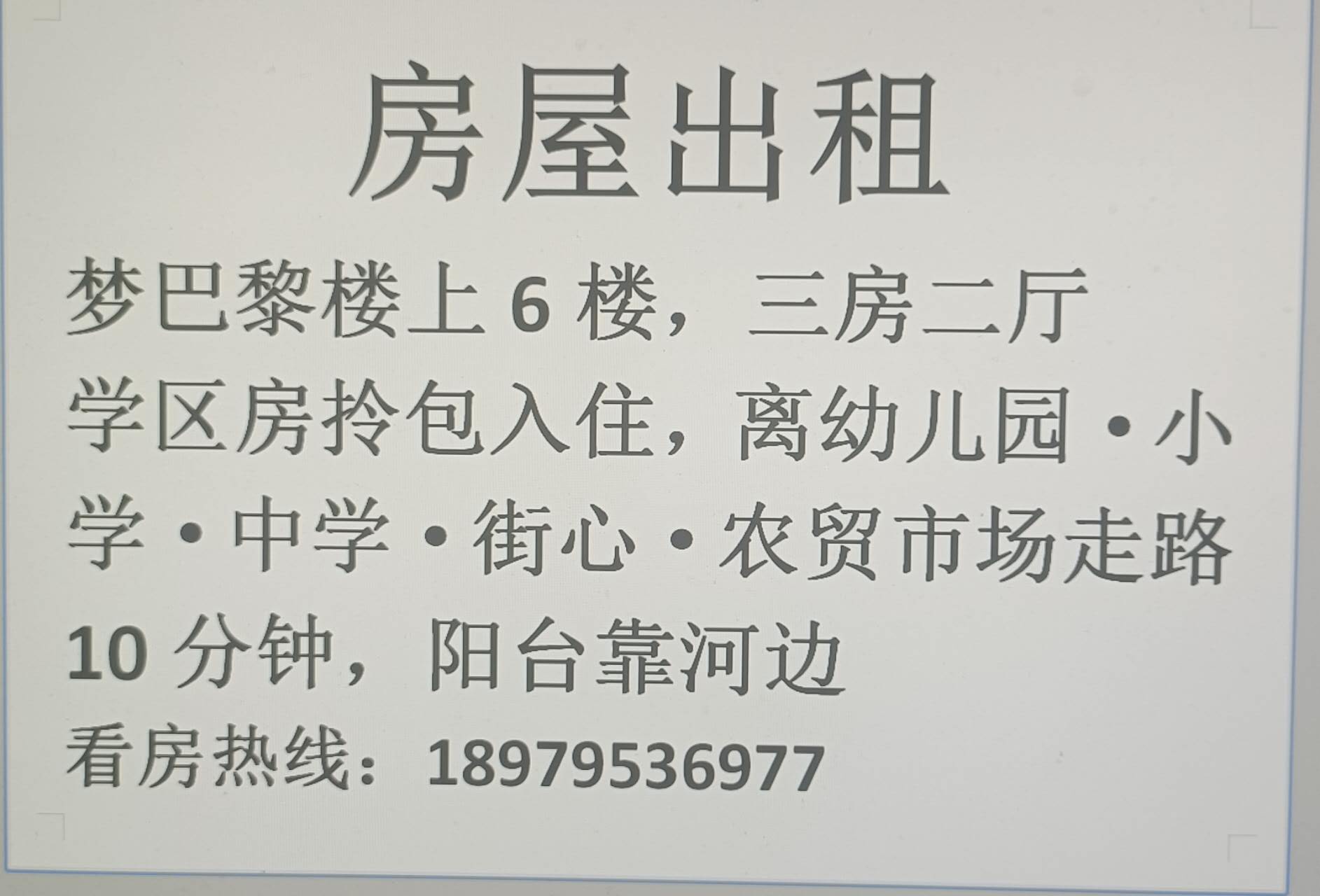 三室两厅,拎包入住,5500元一年,可议价