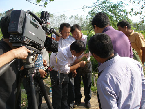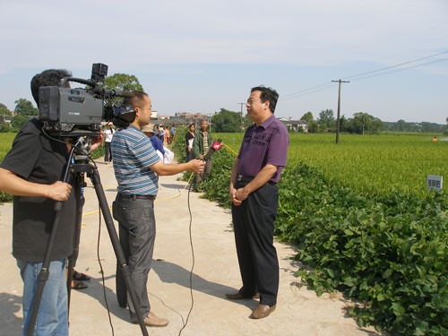 9月16日,江西卫视记者在省植保植检局有关人员陪同下,就上高县水稻病虫防治典型作法进行专题拍摄,上高农业局负责人及汇农合作社统防队等有关人员参与。