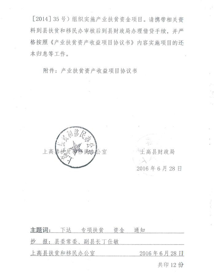 关于下达2015年度上高县财政专项扶贫资金(第一批产业扶贫资金)计划的通知上扶移字[2016]10号