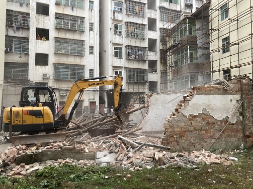 锦江镇:拆除老旧建筑 方便居民出行