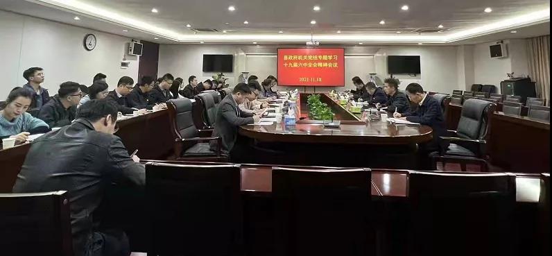 11月18日,县政府机关党组召开党的十九届六中全会精神专题学习会议,县委副书记、县政府党组书记、县长周万辉出席会议并讲话,县政协副主席、县政府机关党组书记、县政府办主任熊辉主持会议,县党史学习教育第二巡回调研指导组副组长、县纪委宣传部部长潘杰敏到会指导,县政府机关党组成员、政府办全体干部参加。