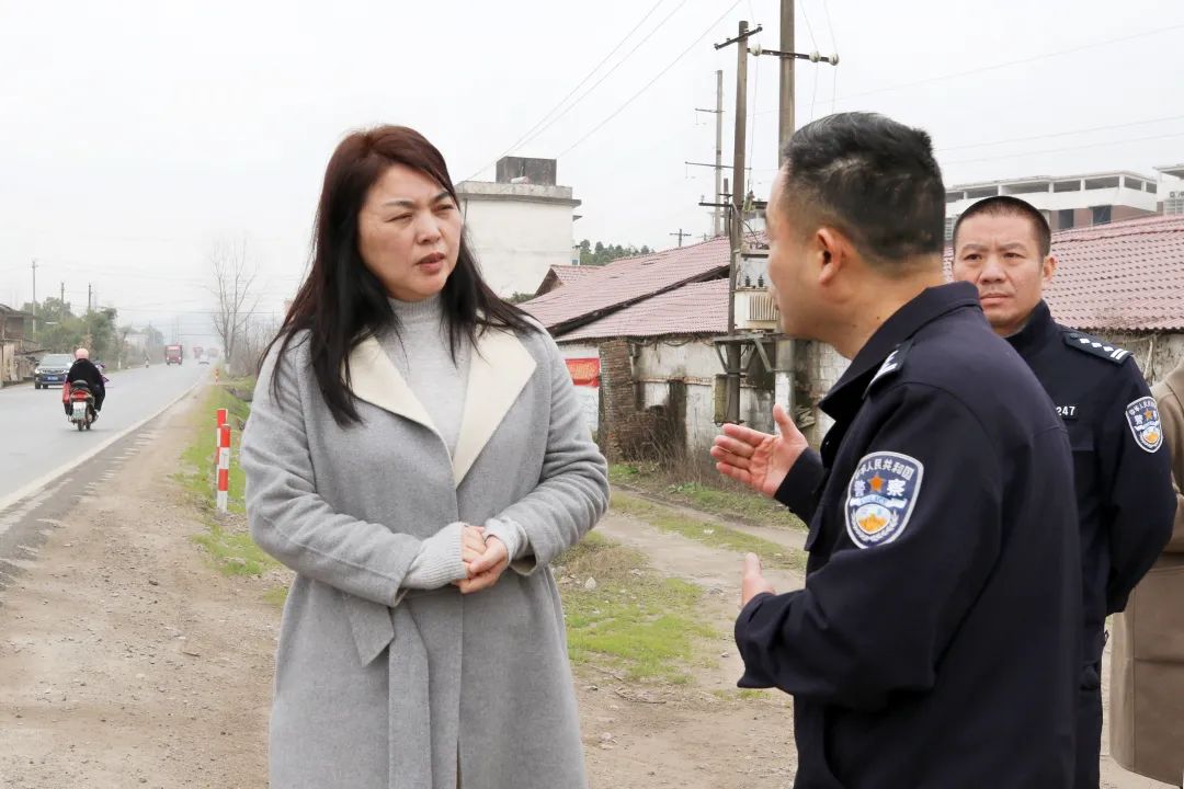 在省道S221塔下段,陈爱红实地察看了交通路口交通状况,听取了相关负责人对道路交通安全隐患排查整治工作情况汇报。她指出,各地各部门要牢固树立“人民至上、生命至上”的安全发展理念,始终把群众出行安全放在首位,充分认识隐患排查整治工作的重要性,坚持排查与治理并重,安全与畅通并行,全力以赴推进隐患排查整治工作;要科学设置交通标志标线,规范完善减速带、警示牌等安全防护设施,尽最大努力完善交通设施,最大限度消除道路交通安全隐患,强化路面巡逻管控,全力维护我县道路交通环境平安、有序、畅通。